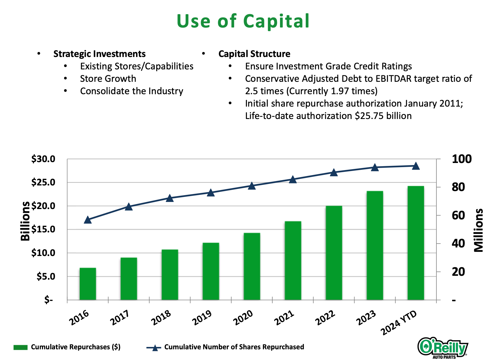 Given that ORLY is now comfortably below the upper end of its investment-grade credit leverage ratio, some analysts have started to question whether 2x has become the new norm. CFO Jeremey Fletcher recently declared.