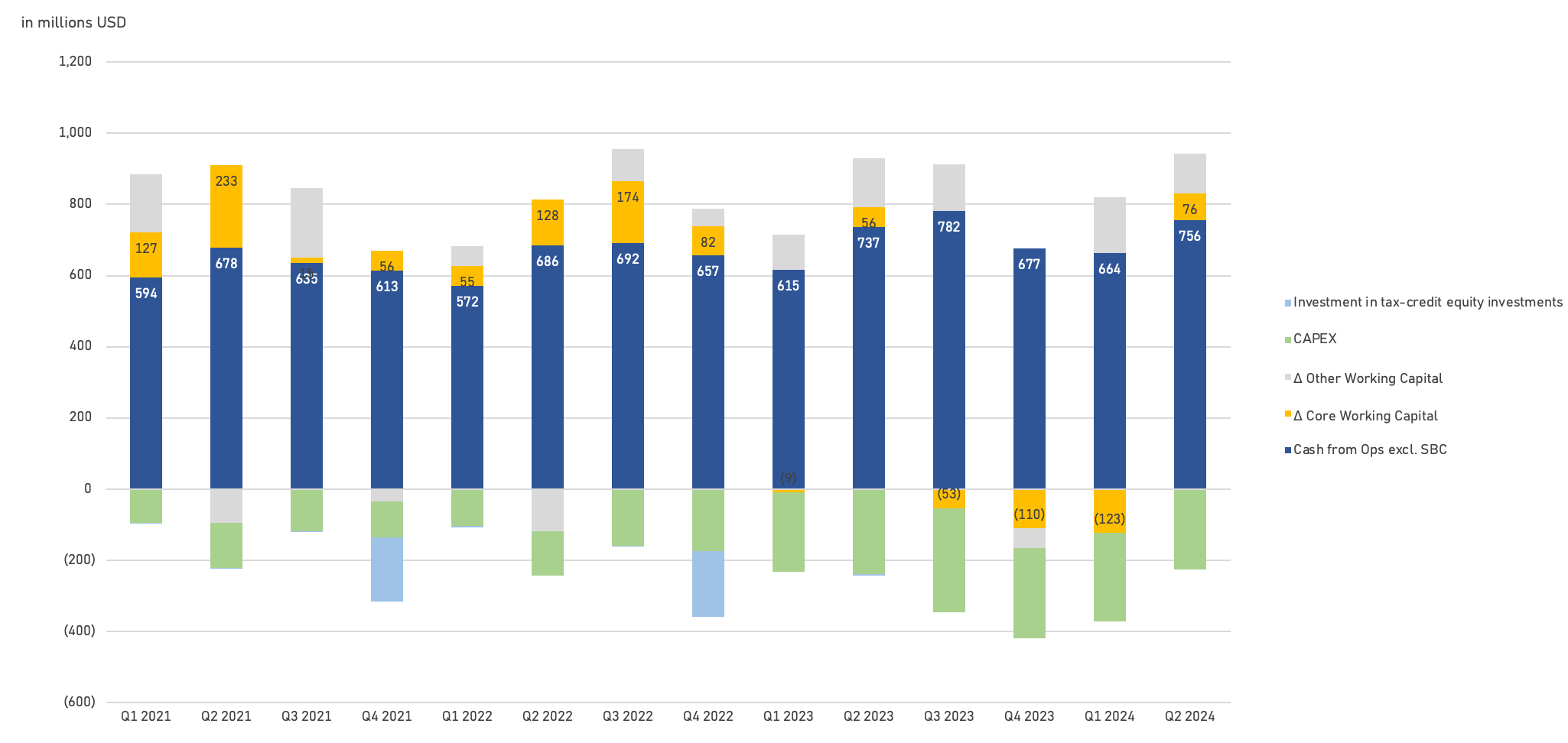 Put simply, cash inflows from other working capital related to income taxes payable tend to be offset by these tax credit equity investments. Net net, there’s not much of an impact on free cash flow. The same is true for AZO.