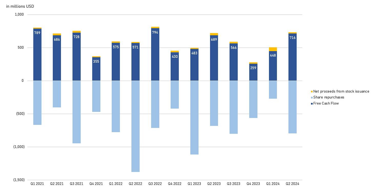 When you’re a steady quality growth company trading at relatively stable multiples, buying back your own stock isn’t likely to be a bad allocation strategy. Consistent execution of a share repurchase program and opportunistically buying back more stock at lower valuations has proven to be a solid strategy.