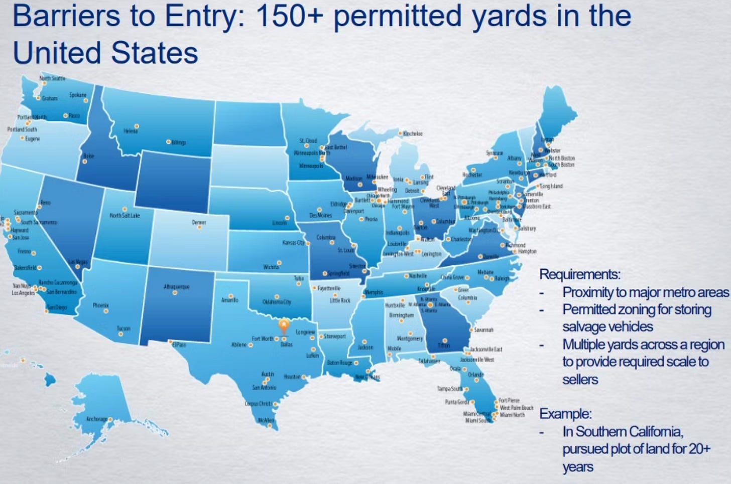strategic decision to own its land directly (one-time CAPEX instead of leasing), and duopoly with Insurance Auto Auctions (now part of Ritchie Brothers);