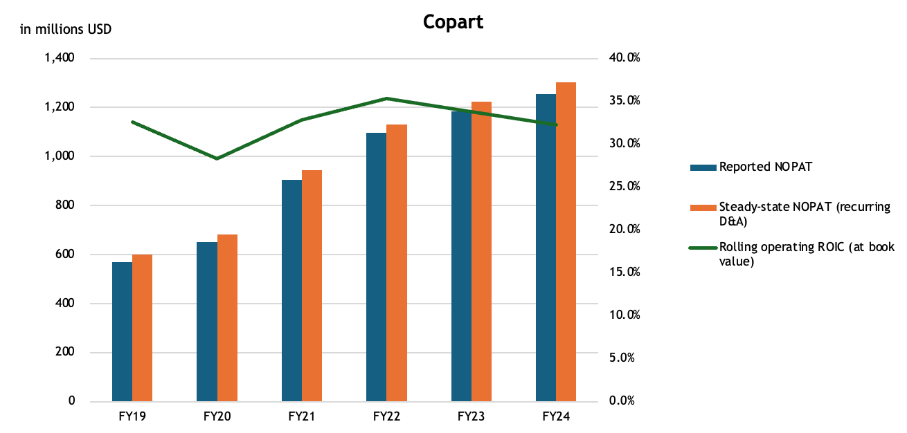 The question becomes: what do incremental returns look like from here, and at which pace can Copart keep growing its NOPAT?