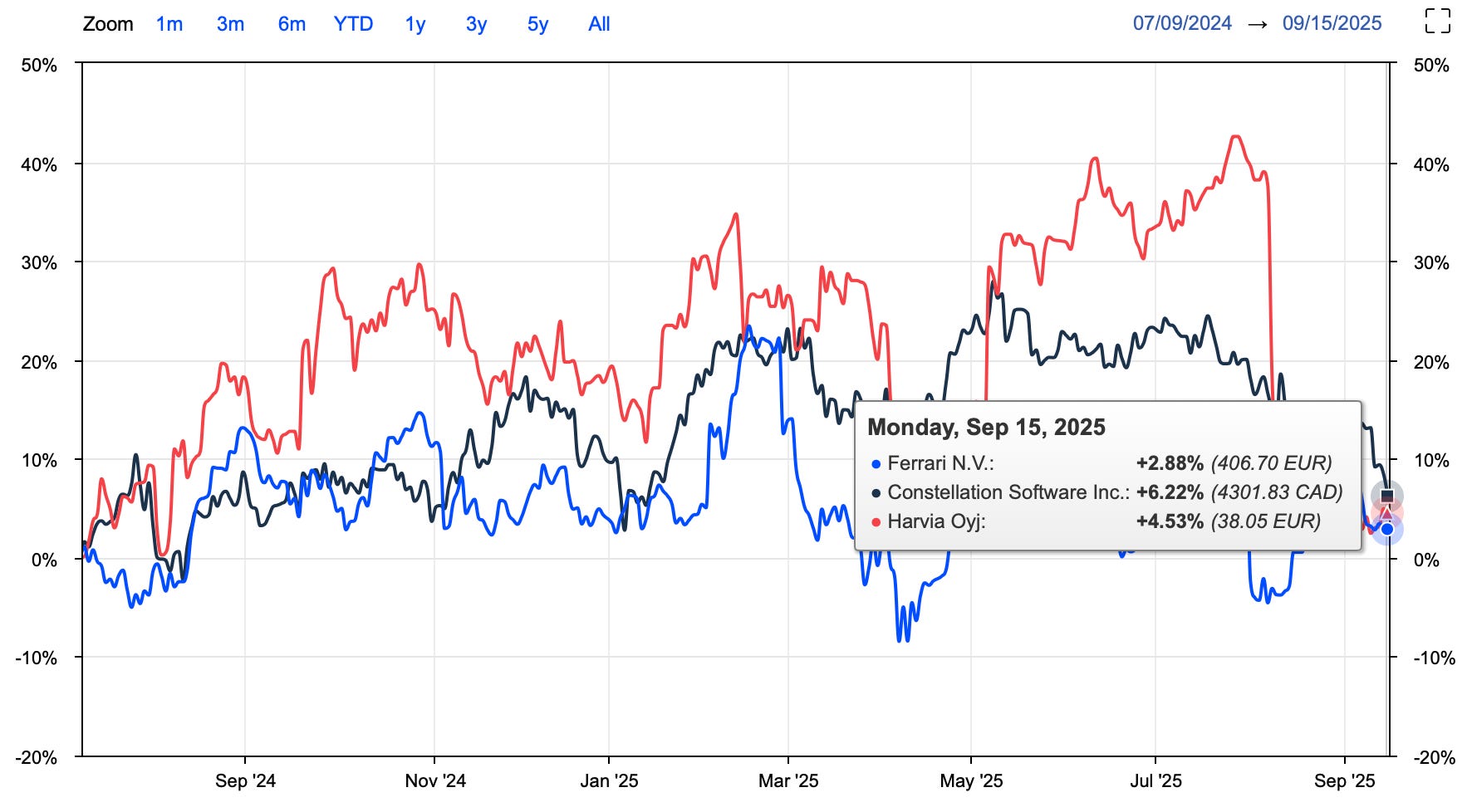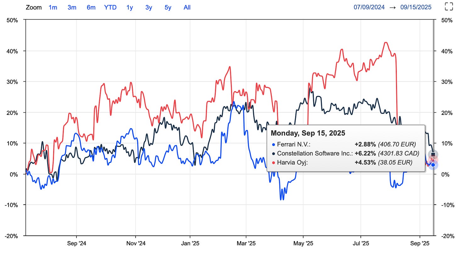 Laggards from a share price perspective; not from a fundamental perspective (that’s when there’s a real problem). Since July 2024 (to many, it feels like an eternal holding period), our three top positions haven’t moved much. Something must be going terribly wrong… It means we’ve entered a new stage in markets where one’s fundamental conviction is eroding based on relative underperformance.
