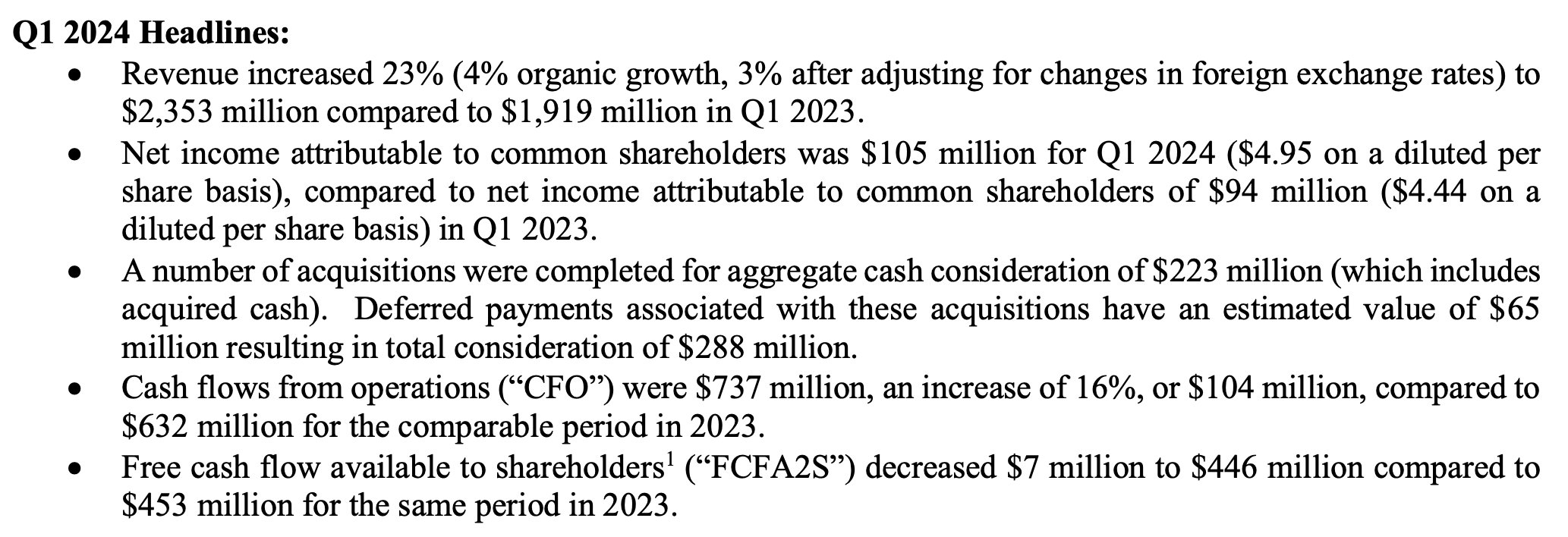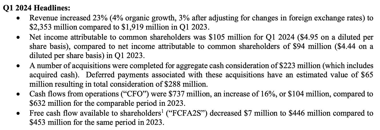 Q1 2024 - Full Analysis of Constellation Software & Its Spin-Out Companies